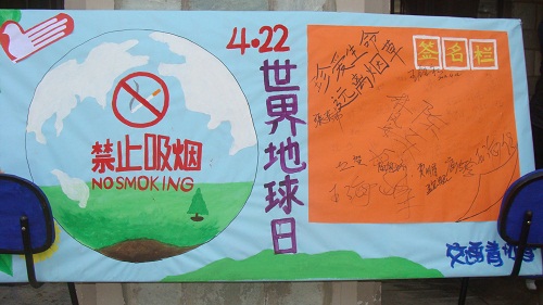 1、在教学楼前摆放展板,用以介绍世界地球日的相关知识以及宣传爱护地球,爱护环境的相关知识。现场讲读有关世界地球日的相关内容,倡导大家保护环境,以及为保护地球环境做一些了力所能及的事。