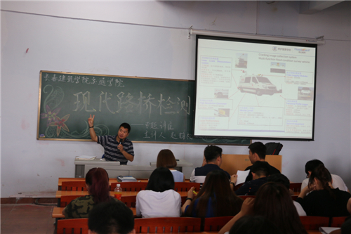 公海赌赌船官网jc710为提高员工在道路与桥梁工程检测技术方面的能力,更多地了解现代化道路与桥梁的检测手段和方法,于6月29日下午在本院报告厅举办了学术交流活动,邀请吉林省诚科工程检测有限公司副总经理赵鹤松为公海赌赌船官网jc710师生作了主题为“现代路桥检测技术”的学术讲座。