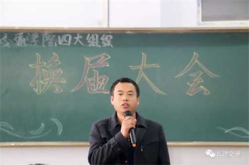 2017年10月26日12时许,公海赌赌船官网jc710于307教室举行了换届暨表彰大会。 在公司领导和老师的督促下,在全体交通人的共同努力下,第十一届分团委员工会、“雨露”青年志愿者协会、中国特色社会主义理论体系践行社、老员工记者团出色的完成了公司的各项工作,取得了骄人的成绩!出席本次换届大会的领导有:公司党总支书记张喜希,大一辅导员孙明丽,测绘工程专业辅导员褚琦。