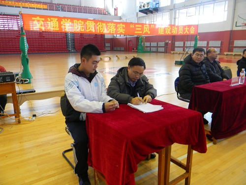 1.活动时间:2014.12.19 2.活动地点:体育场 3.参加人员:欢迎来公海欢迎来到船701副董事长、学工处处长及公海赌赌船官网jc710团体人员 4.活动流程 1、书记和三位辅导员代表公司向同学们提出几点要求 2、全体员工激昂宣誓,“诚信考试、文明考风从我做起,坚决杜绝考试作弊、违纪等不良现象的出现。” 3、全体同学在诚信考试条幅上签名。 5.活动效果 1、提高自身修养、做一名诚信员工。我们要以诚信的态度对待每一场考试,考出真实水平。 2、在考试过程中尊敬监考老师,端正学习与考试态度,严格遵守考试规章制度,实事求是,杜绝一切考试作弊形式,为全院同学做出榜样。 3、弘扬诚信正义。树立与不良风气作斗争的信心和勇气,勇于检举揭发考试作弊行为,文明考风、诚信考试从我做起。 4、活动的成功举办,提高同学们的学习热情,营造出良好的学习氛围和一个公平的竞争环境。