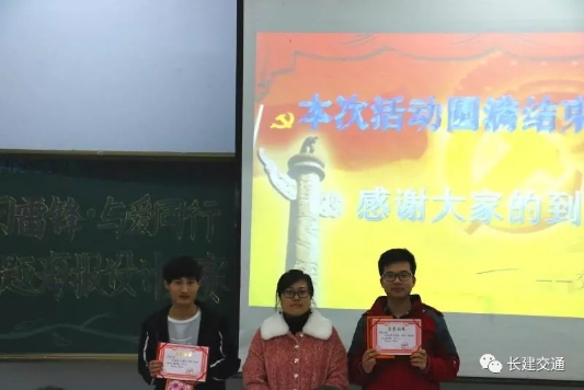 比赛开始由各选手依次介绍自己的作品。大家的创意天马行空,没有局限于传统的样式,有的使用素描的方式将雷锋平凡而又热情的脸庞刻画在纸上;也有的选手心灵手巧,用一把剪刀和一张卡纸就将雷锋光辉的形象留在了白纸上。虽然海报只有小小的一张,但它那有限的容量却可以进行无限的传播!比赛最后由评委进行打分,经过激烈角逐,比赛评出一等奖2名、二等奖2名、三等奖3名。随后分别由大二辅导员孙明丽、分团委副书记胡天禹、团委办公室主任刘丹为选手颁发奖状奖品