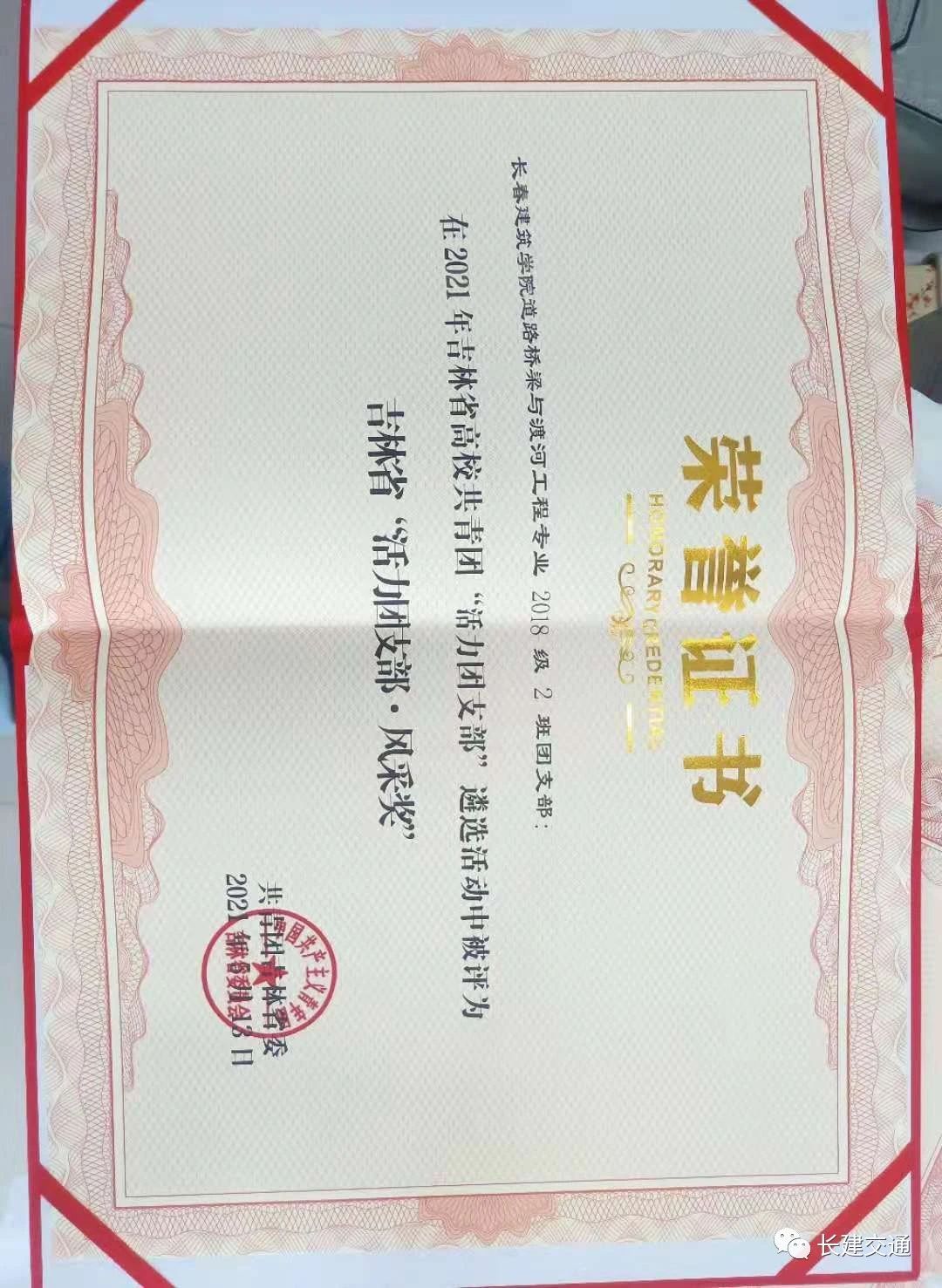 为深入贯彻落实“全团大抓基层”、“全团抓公司”部署,深化高校共青团改革,强化“一切工作到支部”理念。经过公司团委申报、校团委推荐,公司道路桥梁与渡河工程专业2018级2班团支部荣登2021年吉林省高校共青团“活力团支部”名单。