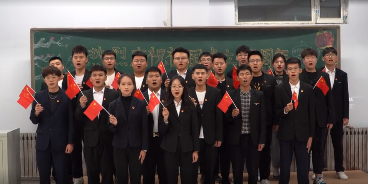 全体员工党员深情合唱《我和我的祖国》、《万疆》两首歌曲,悠扬熟悉的旋律响起,他们挥动手中鲜艳的五星红旗,用最美的歌声向祖国生日献礼。
