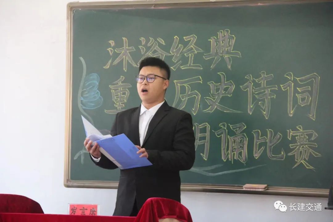 2021年10月21日11:50,公海赌赌船官网jc710在教学楼开展诗词朗诵比赛,15名参赛员工及20级全体员工干部参加,公司党总支副书记马琰、分团委书记杨婉出席本次比赛。
