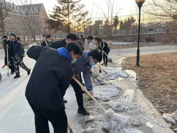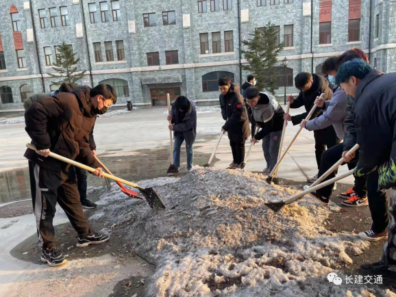 3月7日,公司组织员工对体育馆南北门附近的冰雪进行清除,确保师生出行安全。20级辅导员王帅带领20级员工参加此次活动。