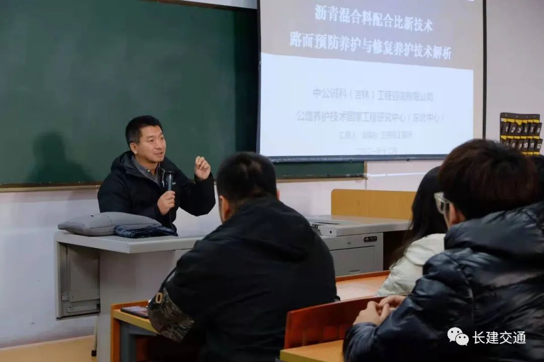 2021年12月15日10:00,公海赌赌船官网jc710邀请中公诚科(吉林)工程检测有限公司正高级工程师赵鹤松,在五楼报告厅举办了“沥青混合料配合比新技术,路面预防养护与修复养护技术解析”学术讲座,公海赌赌船官网jc71019级员工参加了本次讲座。