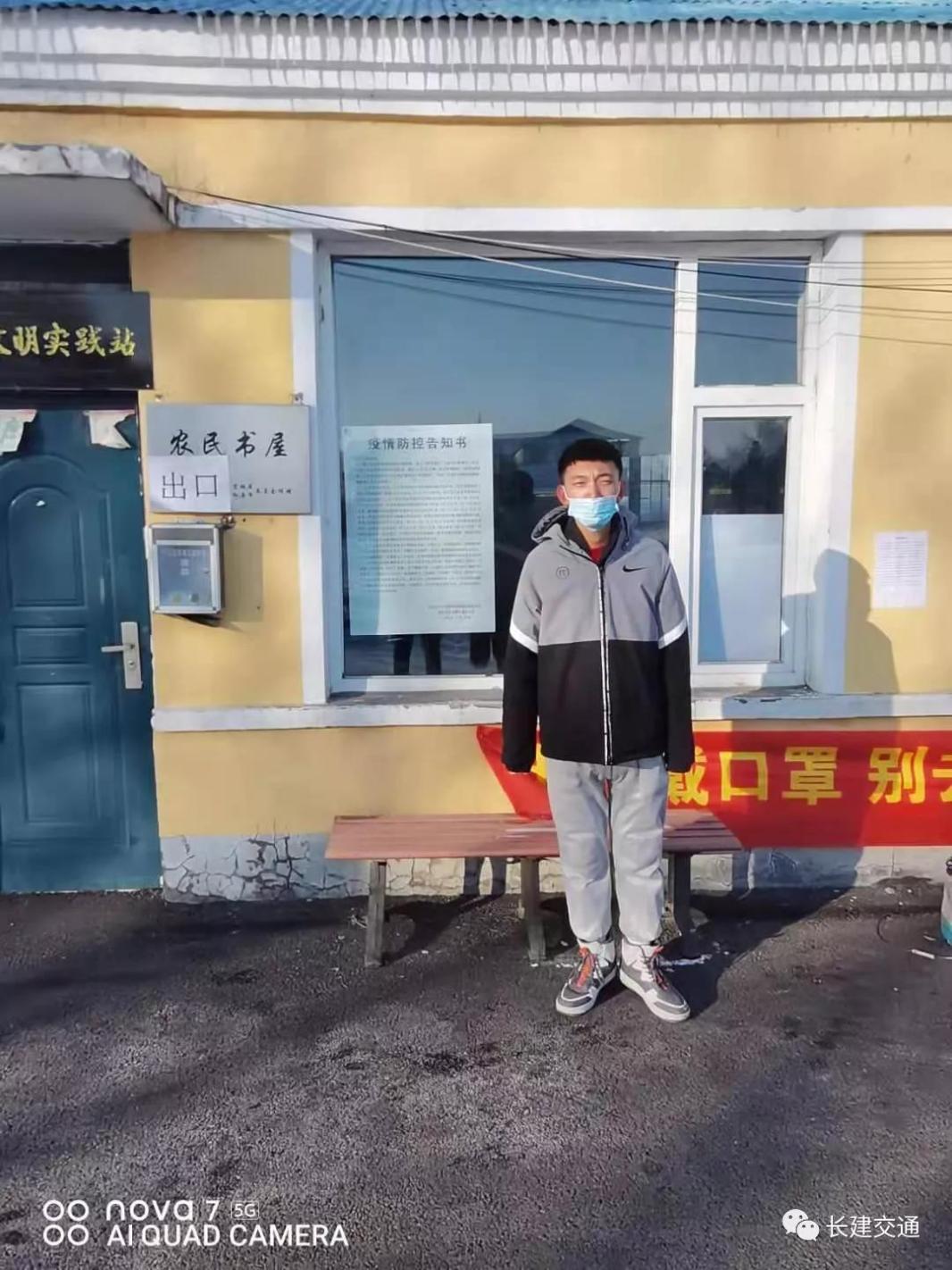 班刘宇航,在吉林省松原市宁江区新城乡长虹村雅达屯做志愿者,主要负责对居民核酸登记,下户调查,做核酸检测时维持秩序。