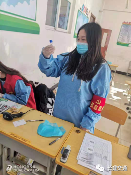 刘欣颖,交通工程1802班员工,共青团员,现任交通工程1802班团支书和员工会副主席。疫情防控期间在吉林省长春市榆树市中兴社区配合医护人员录入核酸检测信息,上门走访登记管辖区域居民信息上报,以及对返榆人员社区报备等登记工作。工作中,她服从社区安排,尽职尽责的完成交代她的任务。