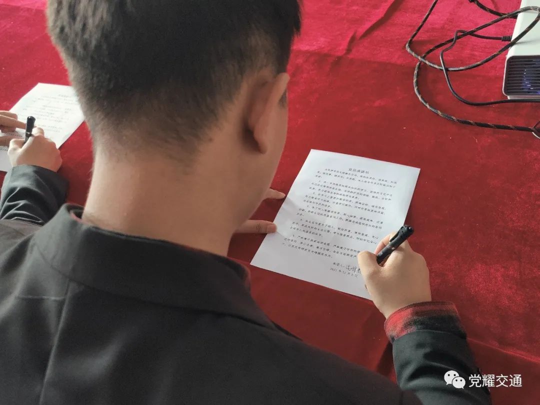 随后,师生党员阅读了承诺书并签名。他们承诺争做担当民族复兴大任的时代新人,并表示自己会认真学习社会主义核心价值观,勇担历史重任;怀有远大的理想和坚定的信念,努力学习,练就过硬的本领。