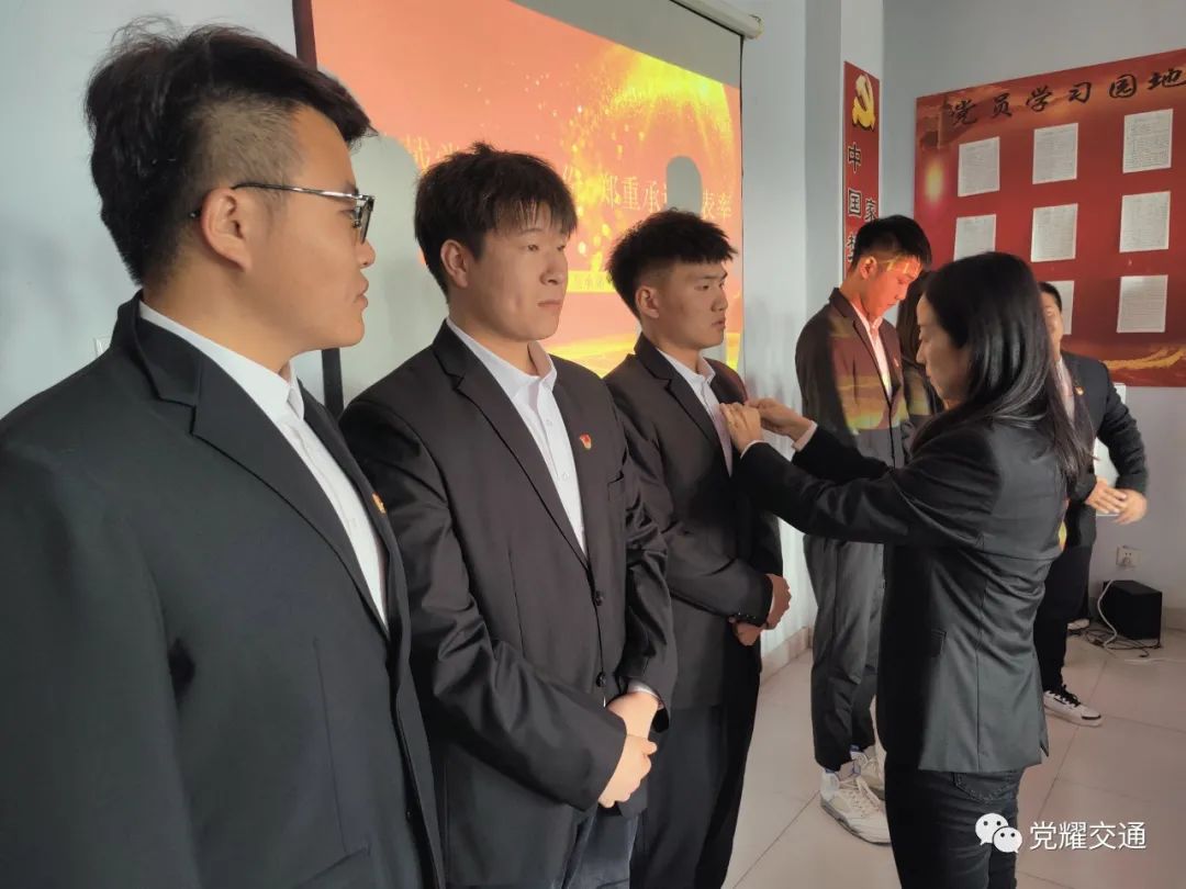 党徽是中国共产党的象征和标志。一名党员代表了一面旗帜,一枚党徽意味着一份责任。党总支副书记马琰和副经理李化东带头佩戴党徽,并亲自为各师生党员佩戴了党徽,希望各位党员在日常工作及生活中严格要求自己,以身作则、率先垂范。要以合格党员的标准把自己摆进去。在发现困难和问题时挺身而出,敢于亮剑,敢于承担责任。共产党员戴党徽,亮出的是身份,赢得的是信任,接受的是监督。