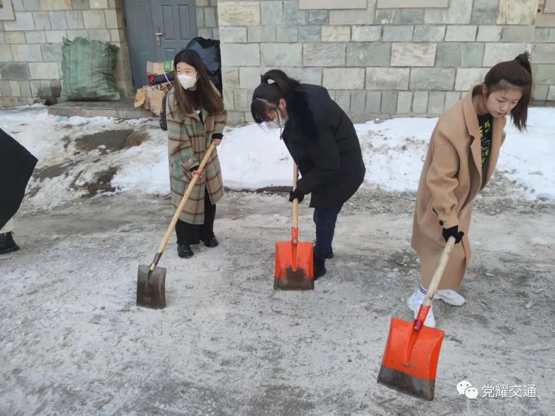 员工党员第一时间到积雪现场报到,划片区合理分工,齐心协力清除了人流量较大区域的积雪,在出力流汗中切实将“我为群众办实事”落在实处。他们用最朴实的行动诠释着劳动是党员的责任和义务。