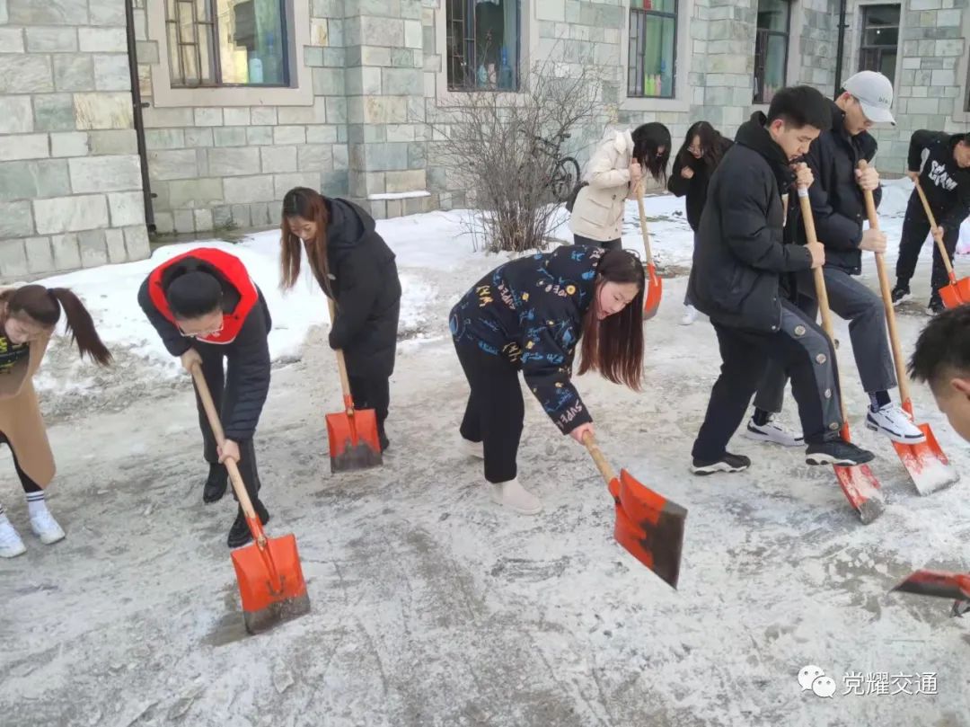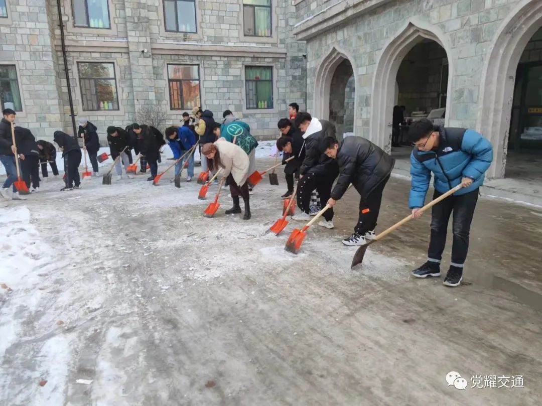 2021年11月17日11:30,受强冷空气影响,长春市降温,大雪齐上阵,公海赌赌船官网jc710内道路积雪结冰严重。为清理积雪、方便师生出行,师生党员积极投入到扫雪除冰工作。此次扫雪除冰活动充分发挥党员先锋模范带头作用和志愿服务群众行动,以点带面、以“包片划区”形式做好分工,高效参加到公司扫雪除冰行动中,引领全院青年员工扎实开展劳动教育,培养劳动精神,锻造劳动能力,展现青年担当。