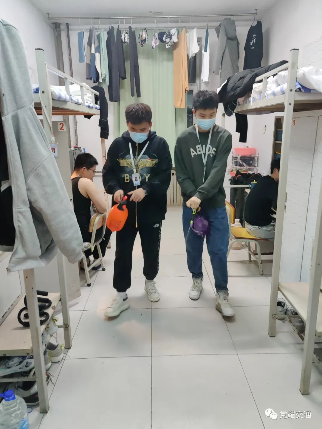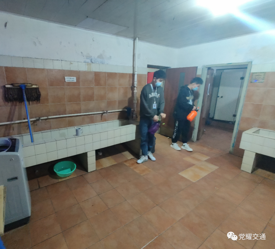 员工党员们按照疫情防控要求佩戴口罩和手套,在楼栋大厅、公共洗衣房、宿舍内全方位喷洒消毒水,把消毒落实到每间寝室、每条过道。在消杀过程中,寝室内的同学积极配合消杀工作。同时,员工党员也严格遵守卫生消杀标准规范操作,全面阻止校园疫情传播,确保校园安全。消毒结束后,各员工党员集合完成消毒工作的反馈上报。