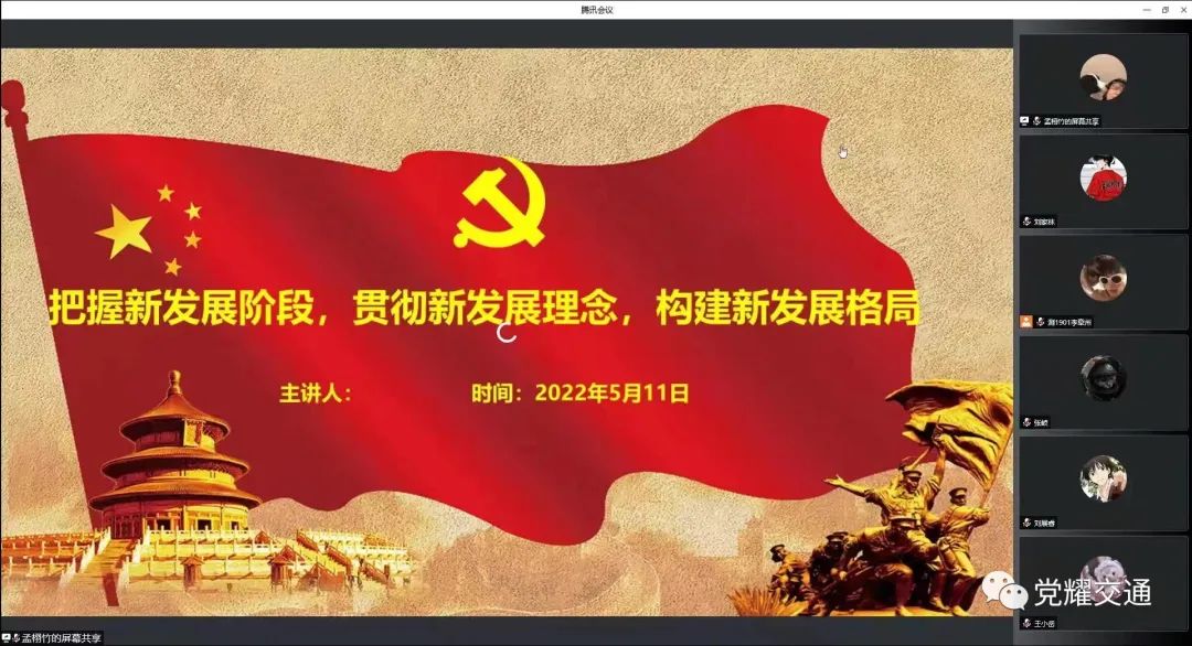 2022年5月11日中午11:30,公司开展《把握新发展阶段,贯彻新发展理念,构建新发展格局》内容的学习。本次学习由公海赌赌船官网jc710团委书记杨婉主持,员工党员孟栩竹主讲。由于疫情影响,本次会议线上进行。