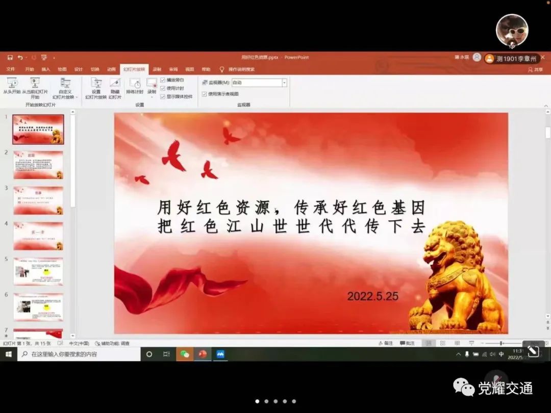 2022年5月25日中午11:30,公司开展《用好红色资源,传承好红色基因,把红色江山世世代代传下去》内容的学习。本次学习由公司党总支副书记马琰主持,员工党员薄永琪主讲。由于疫情影响,本次会议线上进行。