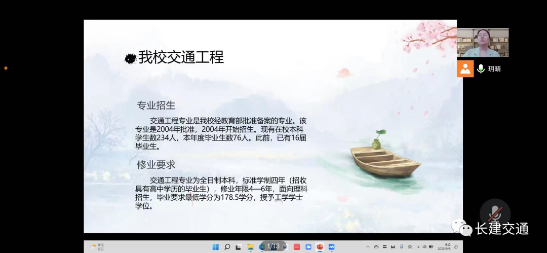 会议伊始,王会进行简单的自我介绍,并对新同学的到来表示热烈欢迎,表达了对2022级新生的美好期望。王会老师通过专业招生、结业要求、专业前景等方面基本知识向同学们介绍本学科。随后,她总结时说道:“只争朝夕,不负韶华,追求梦想!”她勉励新生们把握好眼下的大好青春时光,努力学习,奋发向上,将来成为一名对国家、对社会有用的栋梁之才。