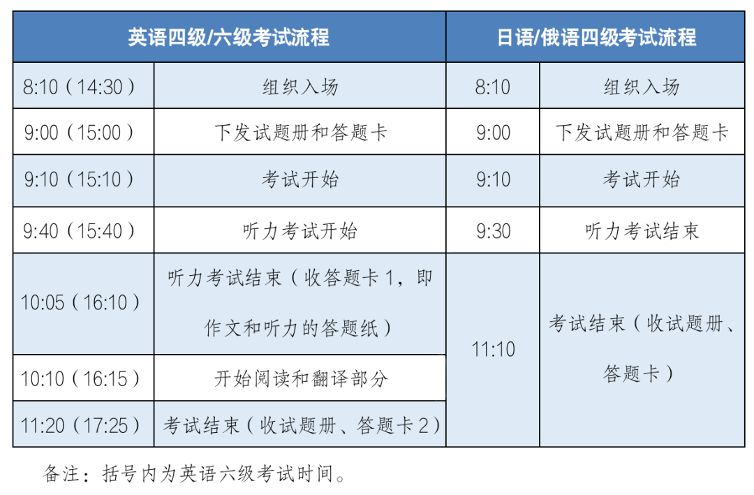 2022年9月17日(星期六)英语四级:9:00—11:20日语、俄语四级:9:00—11:10英语六级:15:00—17:25
