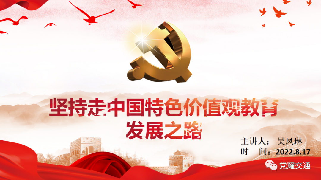 2022年8月17日中午11:30,公司开展《坚持走中国特色价值观教育发展之路》内容的学习。本次学习由员工党员吴凤琳主讲。暑假期间,本次会议线上进行