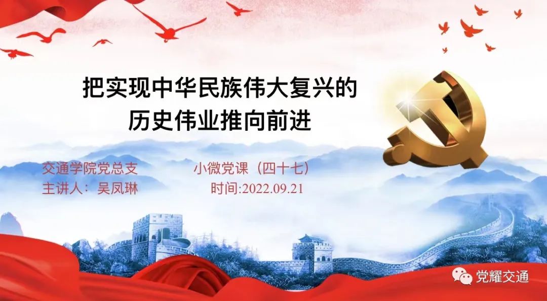 2022年9月21日中午11:30公司开展《把实现中华民族伟大复兴的历史伟业推向前进》的主题党课活动,本次会议由吴凤琳主讲。由于疫情原因,此次会议线上举行。