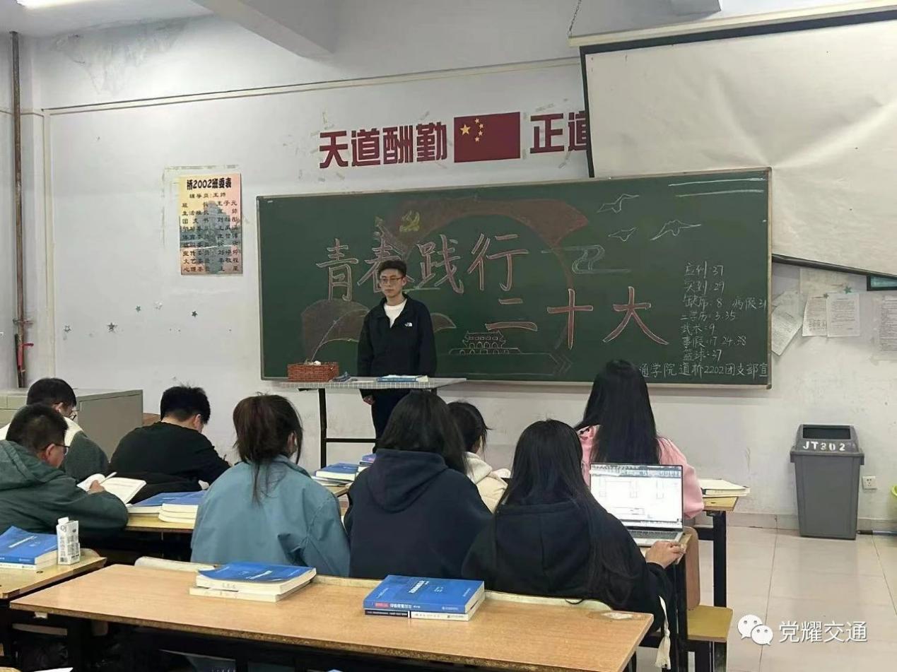 党的二十大是在全党全国各族人民迈上全面建设社会主义现代化国家新征程、向第二个百年奋斗目标进军的关键时刻召开的一次十分重要的大会。为深入贯彻习近平新时代中国特色社会主义思想和党的二十大精神,教育引导同学们以高昂的斗志和青春的姿态开启新的学期,踏上新的征程。为此公海赌赌船官网jc71021级、22级全体员工于2023年3月14日晚19:00召开“青春践行二十大”主题班会。