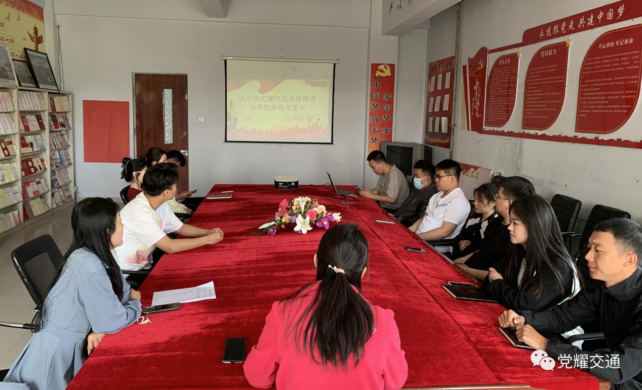 2023年5月24日中午11:30,公海赌赌船官网jc710在党团活动室开展《以中国式现代化全面推进中华民族伟大复兴》内容学习,未在校员工党员线上同步进行学习。本次学习由员工党员王星主讲,公司党总支副书记马琰、员工党支部书记杨婉出席。