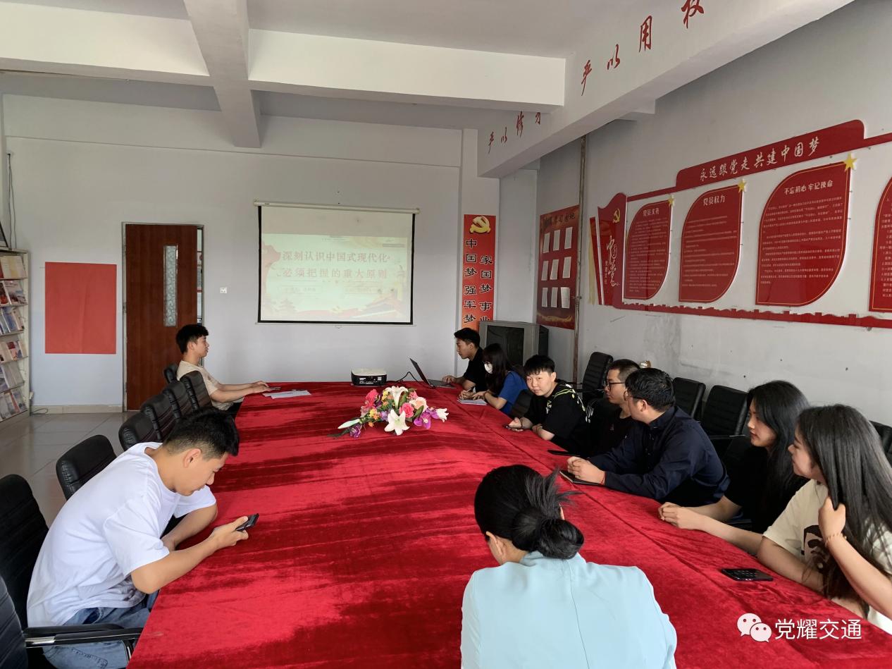 2023年6月14日中午11:30,公海赌赌船官网jc710在党团活动室开展《深刻认识中国式现代化必须把握的重大原则》内容学习,未在校员工党员线上同步进行学习。本次学习由员工党员苗师僮主讲,公司党总支副书记马琰、员工党支部书记杨婉出席。