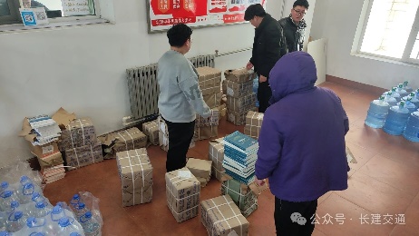 最后,员工干部们一起将书籍整齐地放置在桌上,并按照班级分发到每一位员工手中。