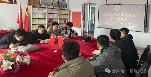 2024年3月13日中午11:40 ,公海赌赌船官网jc710在党团活动室开展《深刻认识健全全面从严治党体系》内容学习。本次学习由员工党员张仕渤主讲,公司党总支副书记马琰出席。