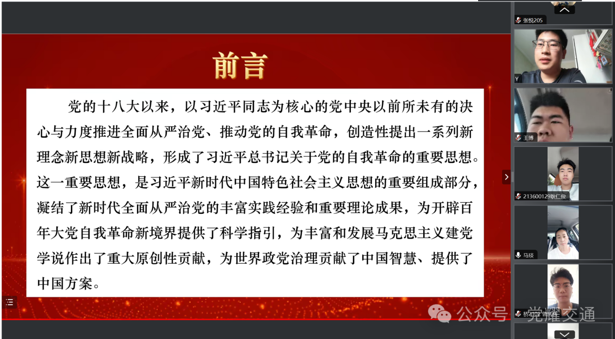 2024年7月24日中午11:00,公司开展《深刻领悟习近平总书记关于党的自我革命的重要思想》内容学习。本次学习由员工党员王博主讲,公司党总支副书记马琰出席。暑假期间,本次会议线上进行。