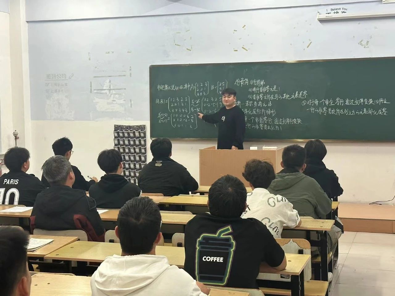 苗壮同学首先为同学们介绍了矩阵的基本概念,包括矩阵的定义、行数与列数的意义等。接着,详细讲解了矩阵的各种运算,如矩阵加法、矩阵数乘以及矩阵乘法。在讲解过程中,苗壮同学通过生动的例子和清晰的板书,让同学们深刻理解了不同运算的规则和特点。