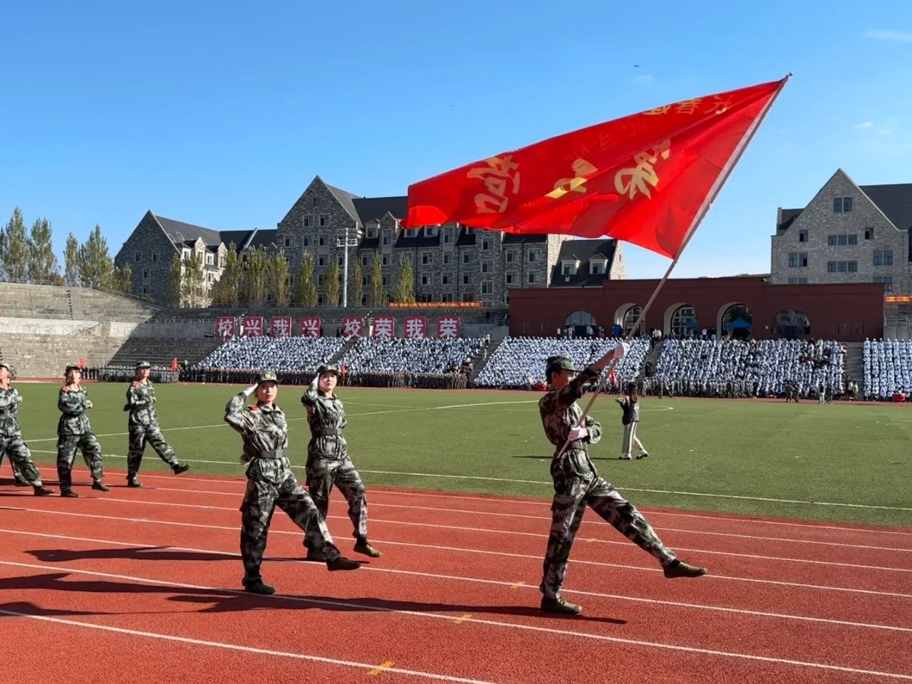 在任玉珊董事长的宣布下,2024级军训阅兵式及开学典礼暨秋季田径运动会开幕式正式开幕!