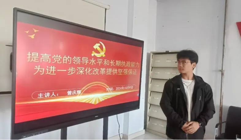 2024年10月9日11点40分,在公海赌赌船官网jc710在党团活动室召开主题为《提高党的领导水平和长期执政能力为进