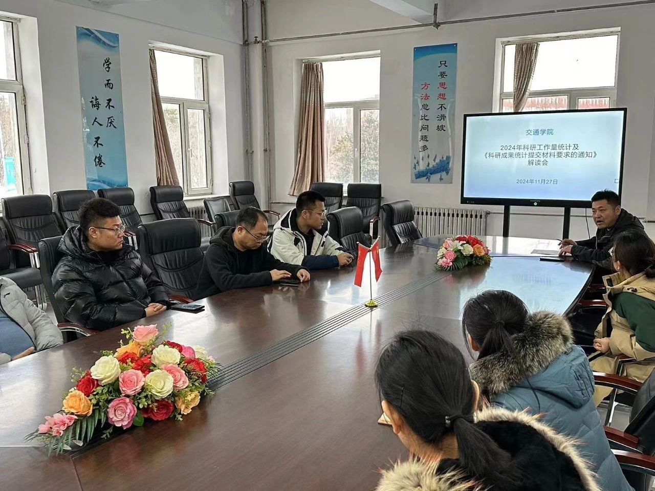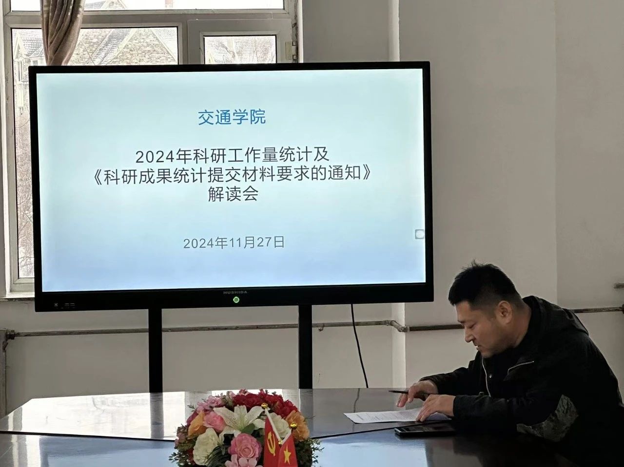 2024年11月27日,公海赌赌船官网jc710在公海赌赌船官网jc710二楼会议室开展2024年科研工作量统计及《科研成果统计提交材料要求的通知》解读会,出席此次会议的有公海赌赌船官网jc710副经理李化东及公海赌赌船官网jc710各教研室老师。