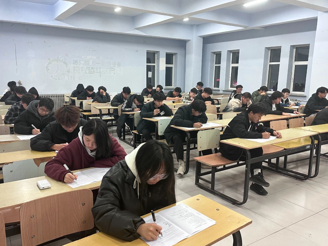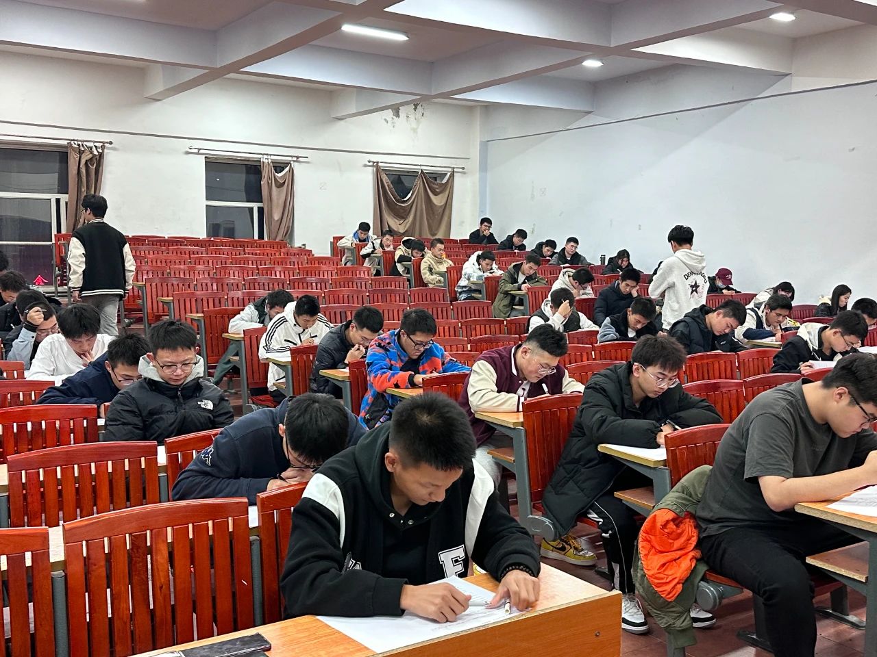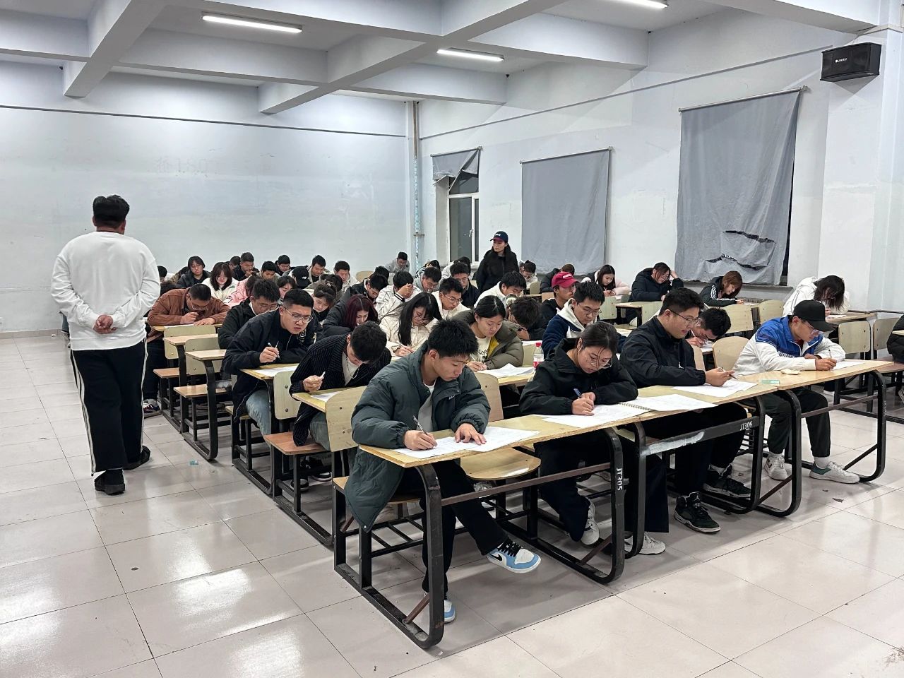 考场上,监考的员工干部们认真履行监考职责,认真监考,考场纪律严明、秩序井然。同学们严守考场纪律、诚信考试。