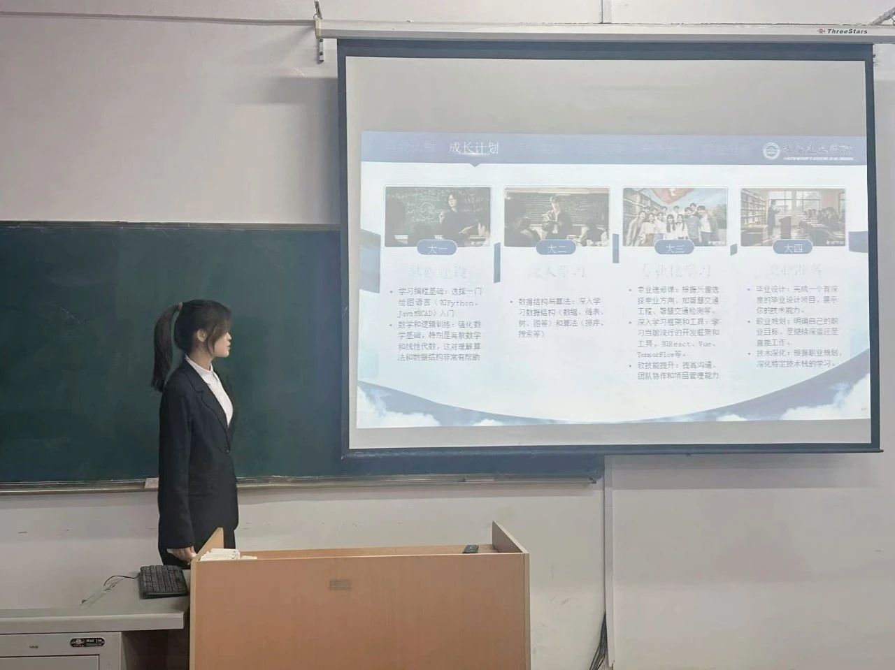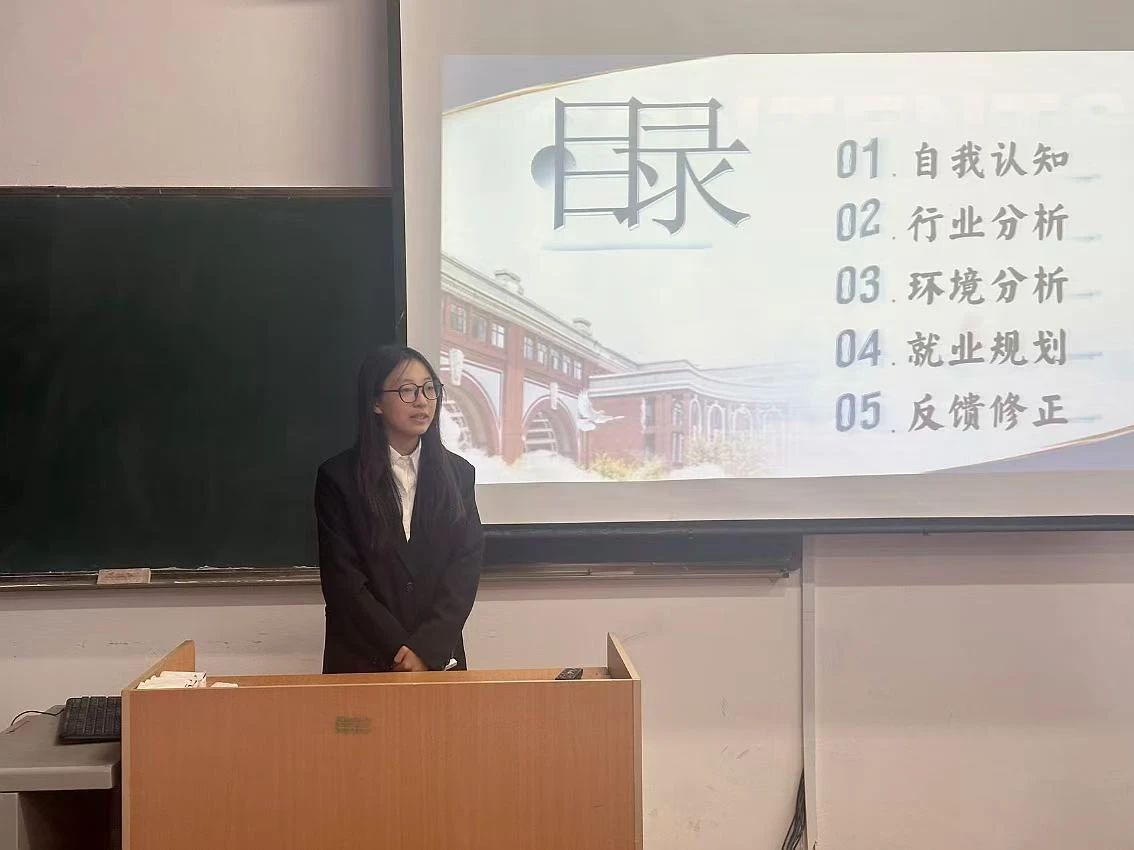 成长赛道和就业赛道的参赛选手现场根据抽签顺序依次上台进行个人职业规划阐述,她们结合自己的专业背景、兴趣爱好以及市场需求,从职业定位、目标设定、行动计划等多个方面进行了详细介绍。有的选手选择了深耕专业领域,致力于成为行业内的佼佼者;有的选手则计划跨领域发展,致力于基层服务事业……她们以饱满的热情和坚定的信念,展示了自己对于未来职业生涯的规划和憧憬。