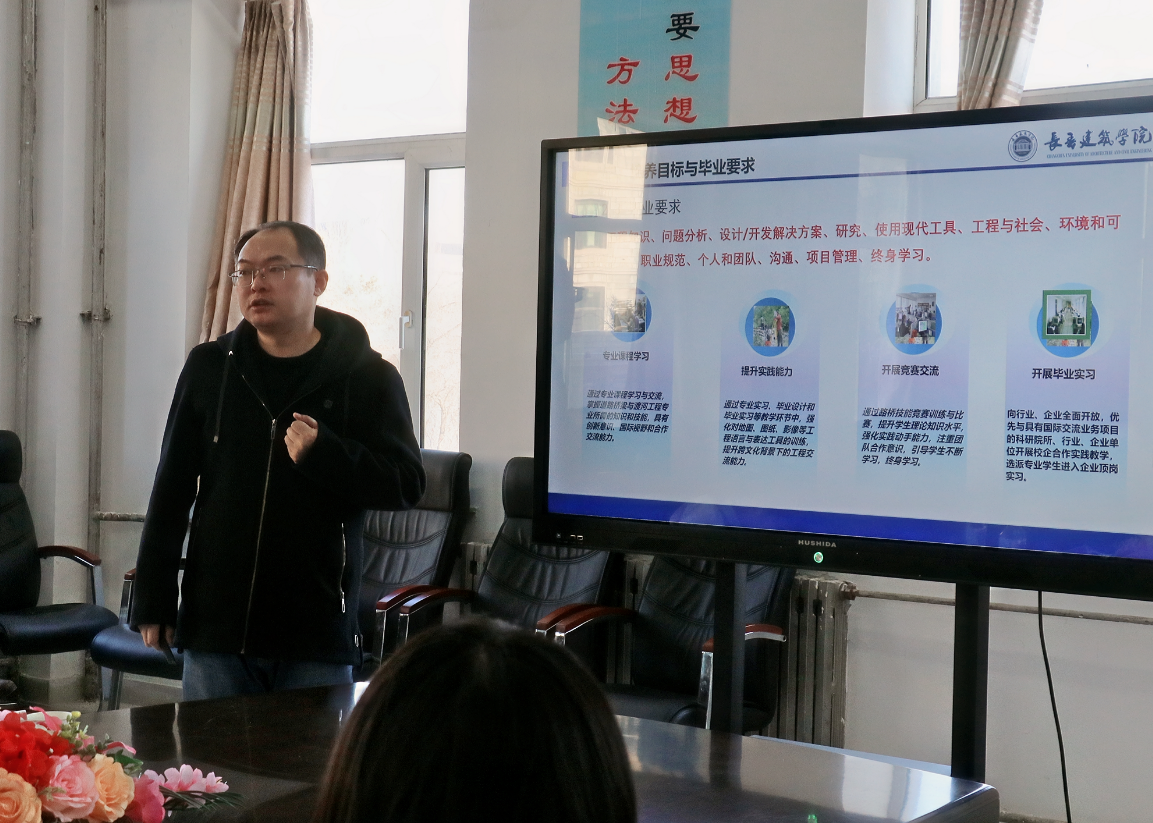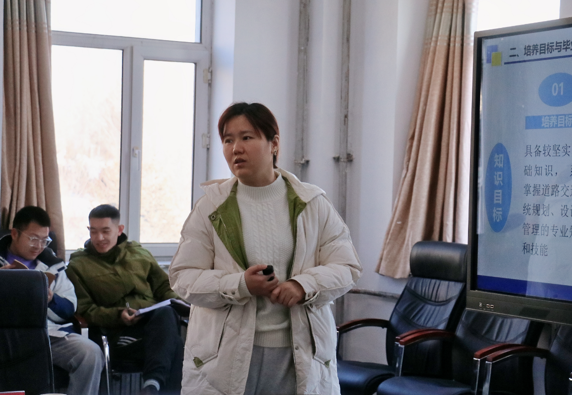 随后交通工程专业、道路桥梁与渡河工程专业、测绘工程专业、智慧交通专业四位专业负责人依次介绍,分别从专业概述、培养目标与毕业要求、课程体系与资源建设、团队队伍与科研方向、员工发展与支持以及专业发展趋势与挑战六大核心板块,对各自专业展开了全方位、多维度的剖析。他们不仅详细阐述了专业的历史沿革、现有规模和特色优势,还结合行业动态与市场需求,深入解读了专业的培养目标和毕业要求,展示了课程体系如何紧密围绕培养目标进行构建,以及教学资源如何有效保障教学质量。