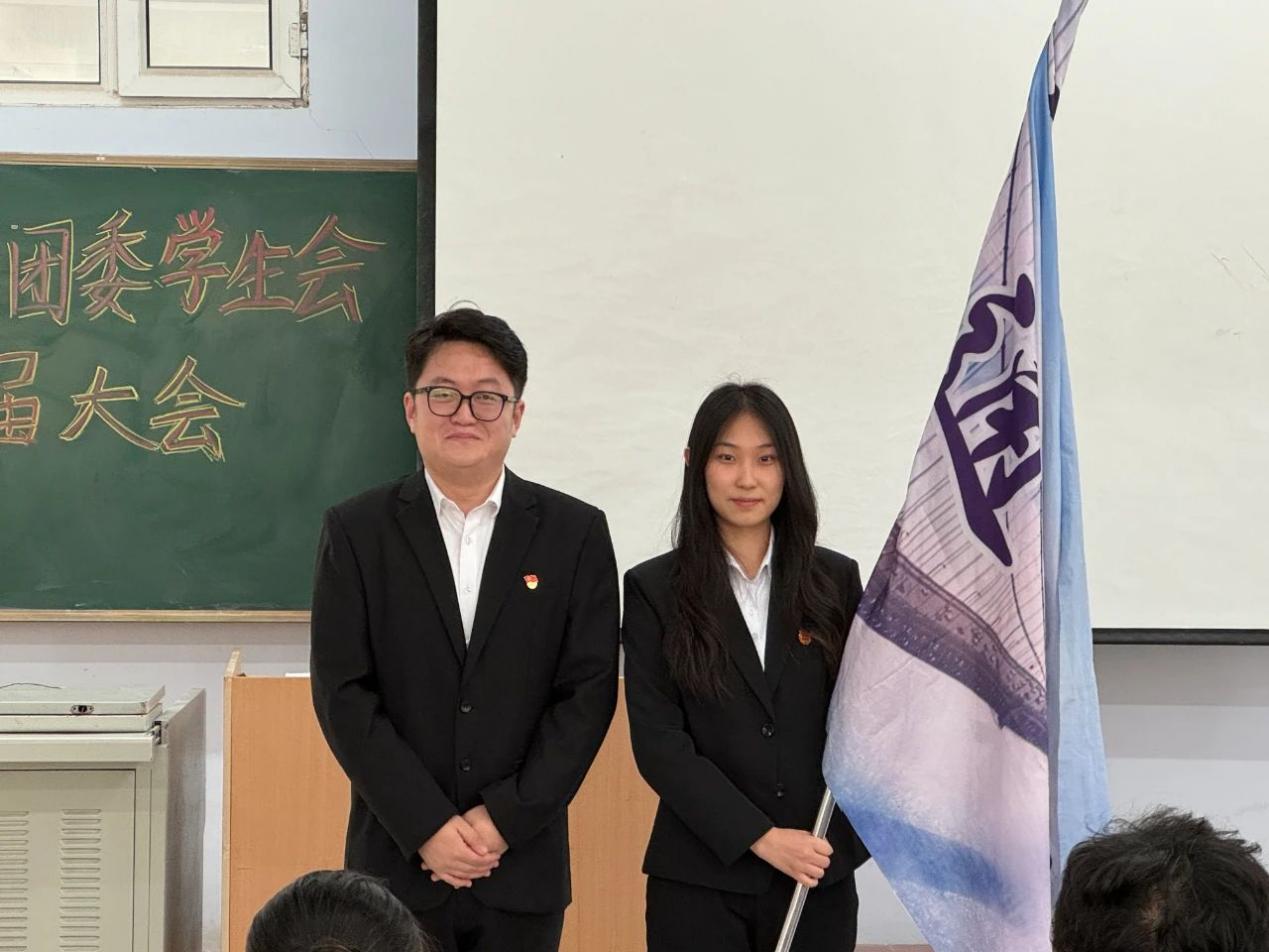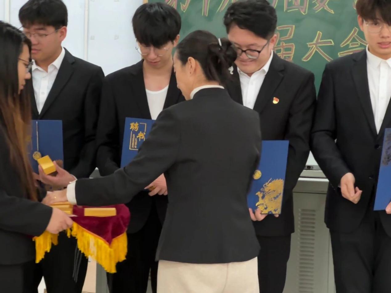 在全场瞩目中,换届授旗环节正式到来。上一届员工会主席将象征着责任与使命的员工会会旗郑重地交到新一届员工会主席手中,这一交接,不仅是组织权力的传递,更是精神信念的传承。接过旗帜的新一届员工会主席满怀激情地宣誓就职,表达了对做好员工会工作的坚定决心与信心,承诺将带领新一届员工会成员,以服务同学为宗旨,以丰富多彩的活动为载体,努力打造积极向上、团结奋进的校园文化氛围。