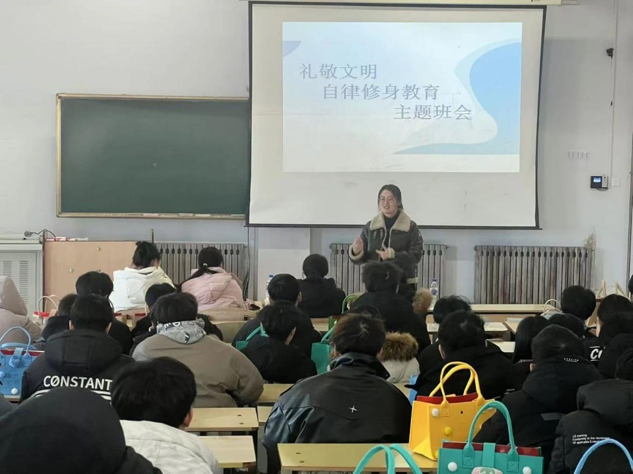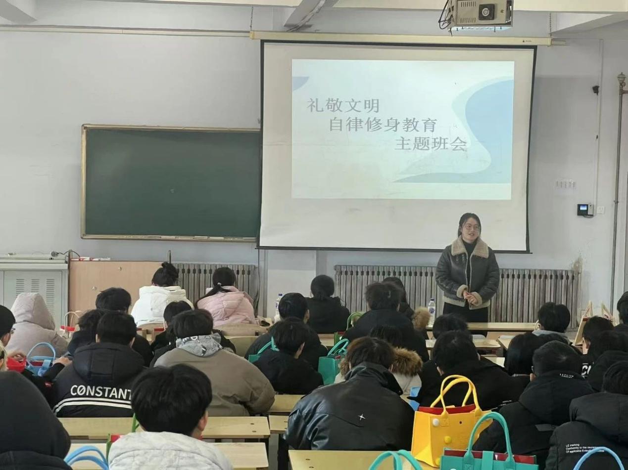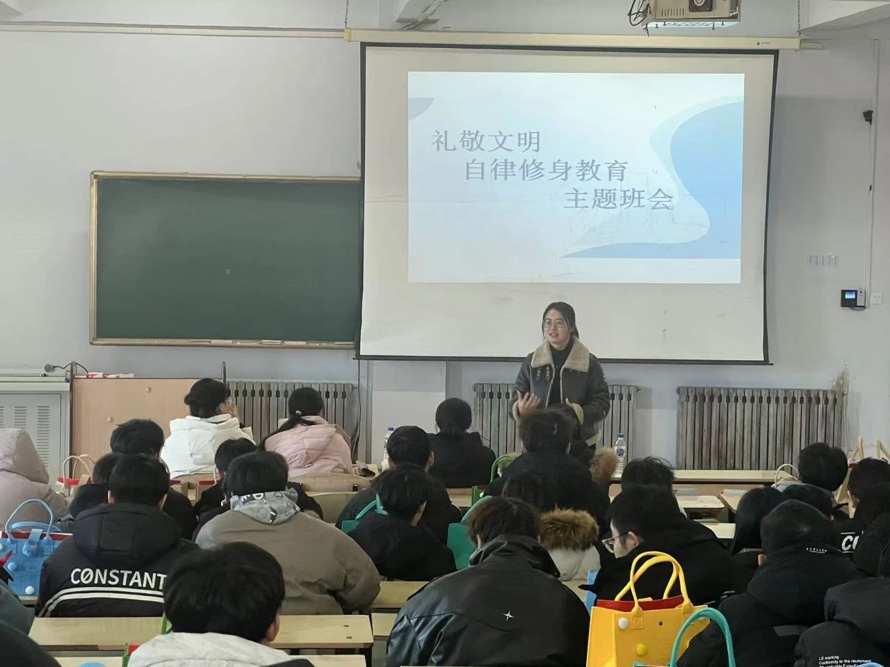 2024年12月11日,公海赌赌船官网jc710在各班级开展以“礼敬文明,自律修身教育”主题班会。此次活动由公海赌赌船官网jc71022级辅导员李赛男主持,22级全体员工参加。