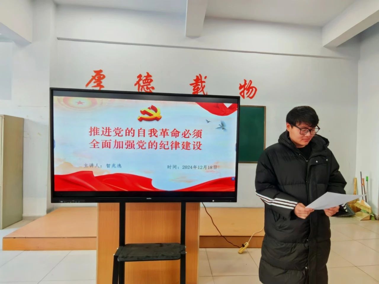 会议过程中,公司党总支副书记马琰讲到:“在党的各项建设事业中,政治建设是党的根本性建设。新时代党的自我革命的伟大实践表明,把党的政治建设摆在党的建设的首位持之以恒加以推进,才能确保我们党永葆马克思主义政党政治本色。实践证明,我们党能够开辟自我革命新境界,关键在于抓住了党的政治建设这个根本性建设。习近平总书记强调,要持之以恒净化政治生态。坚持激浊和扬清并举,严明政治纪律和政治规矩,严肃党内政治生活。为此习近平总书记特别强调,以学习贯彻新修订的纪律处分条例为契机,在全党开展一次集中性纪律教育。”