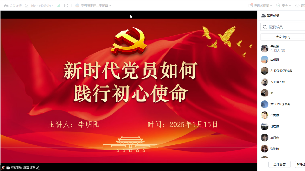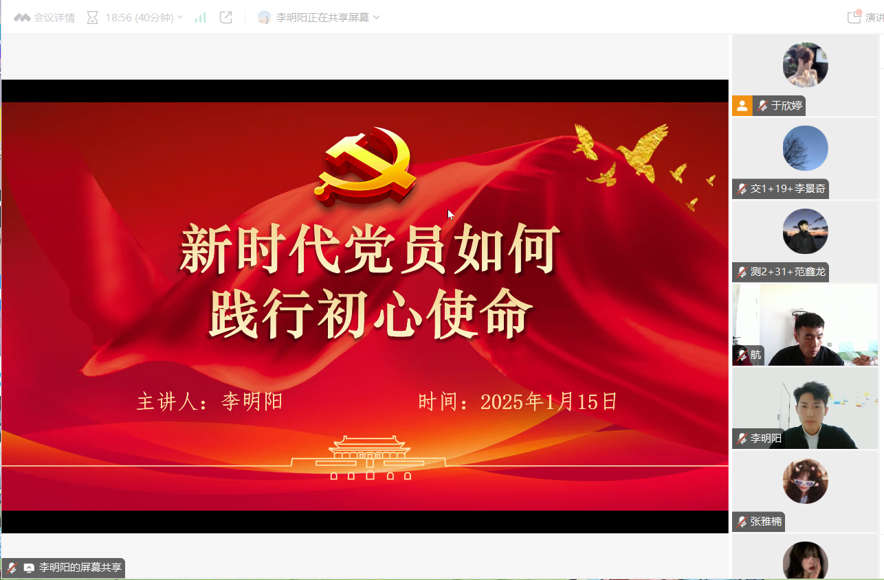 2025年1月15日,公司开展主题为《新时代党员如何践行初心使命》的学习会议。本次学习由2022级员工党员李明阳主讲。出席本次会议的领导有:公海赌赌船官网jc710员工党支部书记郭梓睿。