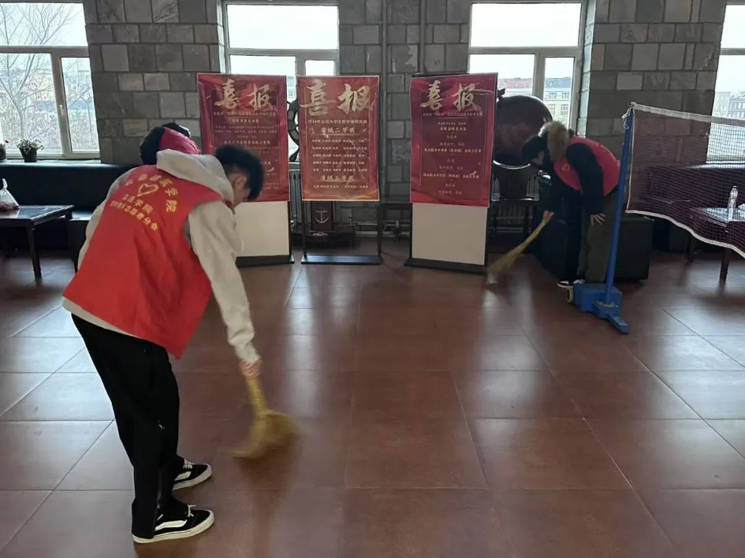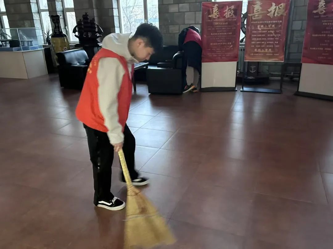 志愿者们分组前往各自清洁区域,认真擦拭清扫地面,不放过任何一处灰尘。校园卫生是同学们拥有良好学习环境的基础,志愿者们打扫过的位置做到了不留一丝痕迹、不放过任何一个角落,实践活动过程中志愿者同学们都各自拿着扫帚、铲子等工具,在打扫过程中同学们互帮互助、分工明确、积极配合、不怕脏不怕累,为同学们创造了一个更好的校园环境。