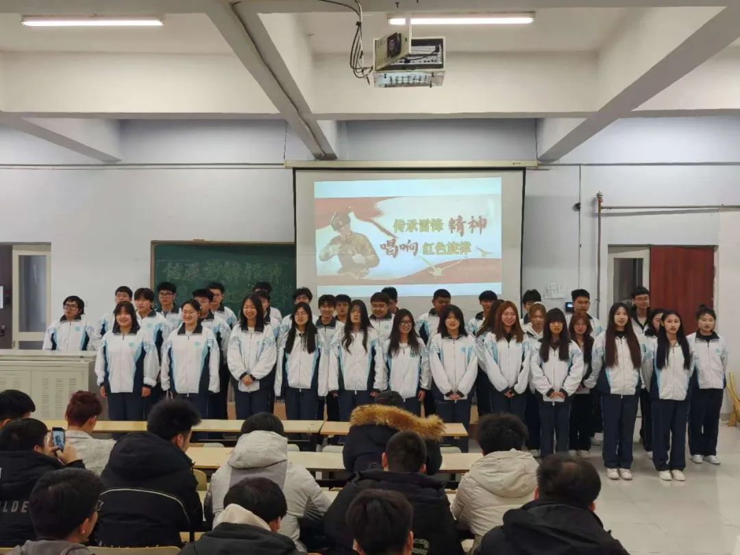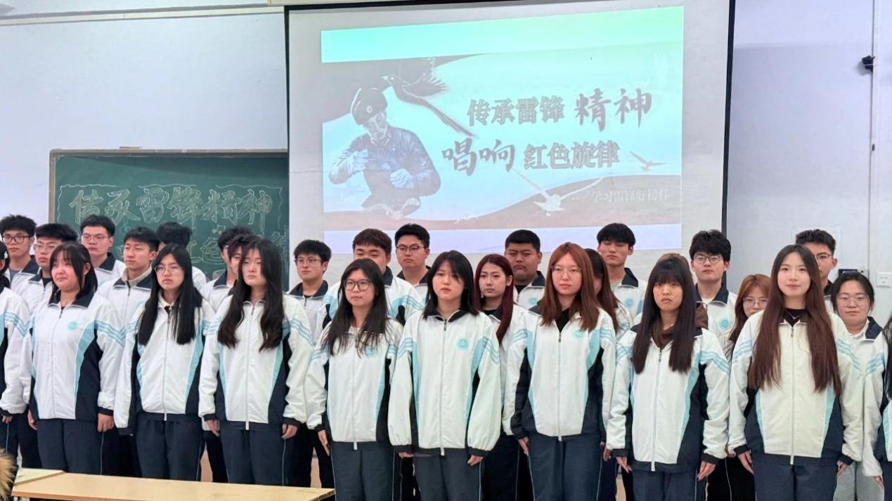 同学们身着整齐服装,精神饱满,用嘹亮的歌声抒发对雷锋精神的崇高敬意和对祖国的热爱之情。激昂奋进的《学习雷锋好榜样》,这首红色歌曲回荡在教室,唱出了新时代青年对雷锋精神的传承与践行。