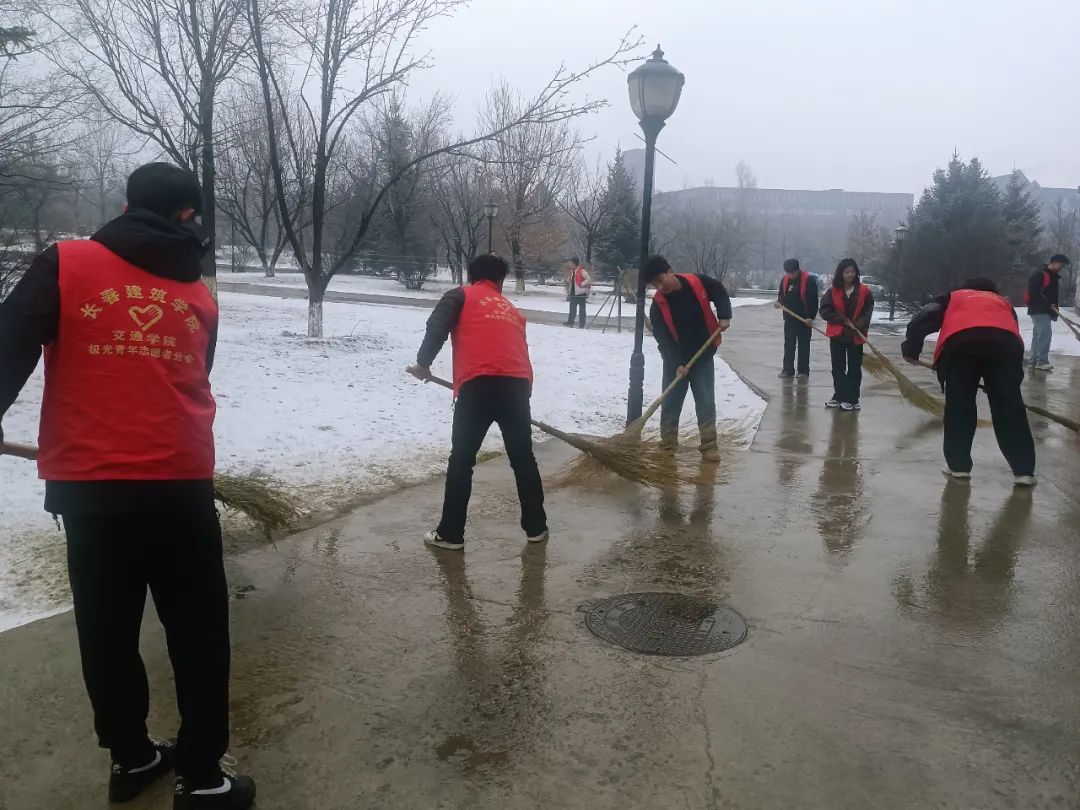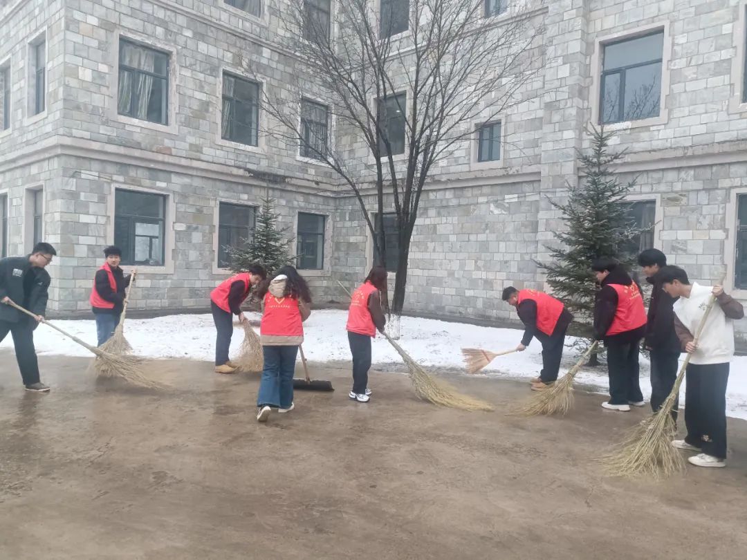 经过几个小时的努力,校园内的主要道路和区域的积雪被清理干净,为师生们开辟出了一条条安全通道。此次扫雪行动不仅展现了公海赌赌船官网jc710员工干部的责任意识和团队协作精神,也体现了他们对校园的热爱和对师生的关怀。同学们用实际行动践行了服务他人、奉献社会的精神,为校园的和谐与安全贡献了自己的力量。