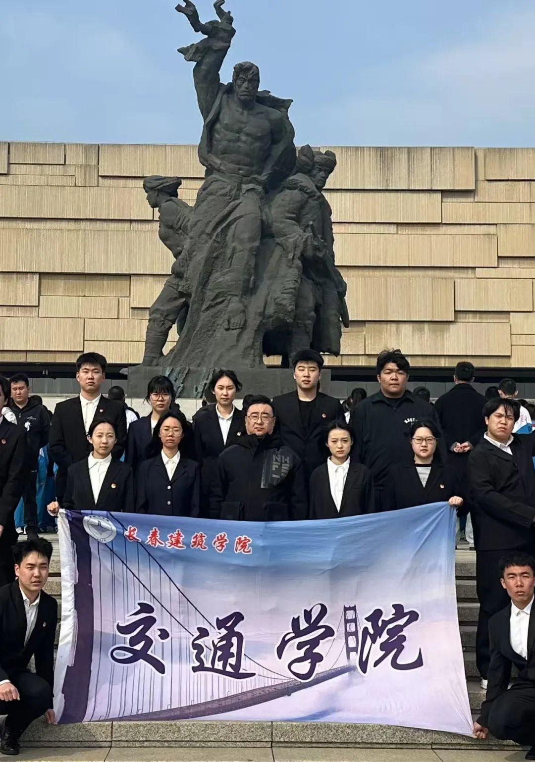 最后,在团委书记郭梓睿的带领下,在纪念馆前合照留念。照片定格了青年一代对历史的庄重承诺与巍峨的烈士纪念碑构成时空对话。
