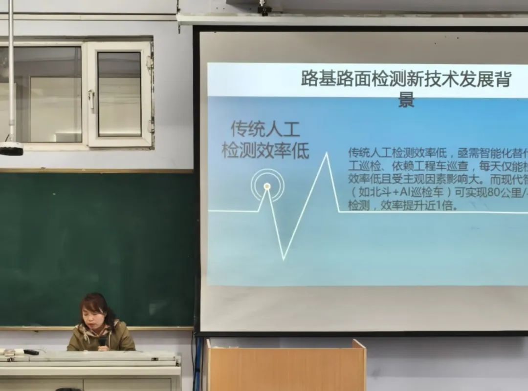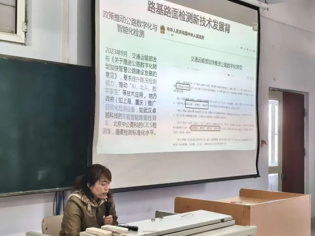 为了让同学们紧跟行业动态,2025年4月16日公海赌赌船官网jc710在JT313教室举办了一场“路基路面检测新技术”讲座。本次讲座由于艳丽主讲、公海赌赌船官网jc710员工参加。
