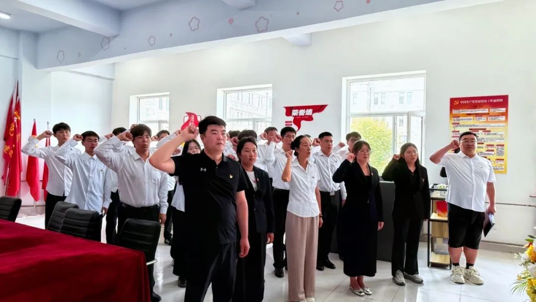 “我志愿加入中国共产党,拥护党的纲领,遵守党的章程,履行党员义务,执行党的决定,严守党的纪律,保守党的秘密,对党忠诚,积极工作,为共产主义奋斗终身,随时准备为党和人民牺牲一切,永不叛党。”在公司党总支组织员李俊达同志的领誓下,全体党员高举右拳,字字铿锵。短短80字誓词,浓缩着共产党人的政治品格与终身承诺:拥护党的纲领、严守党的纪律、为共产主义奋斗终身。