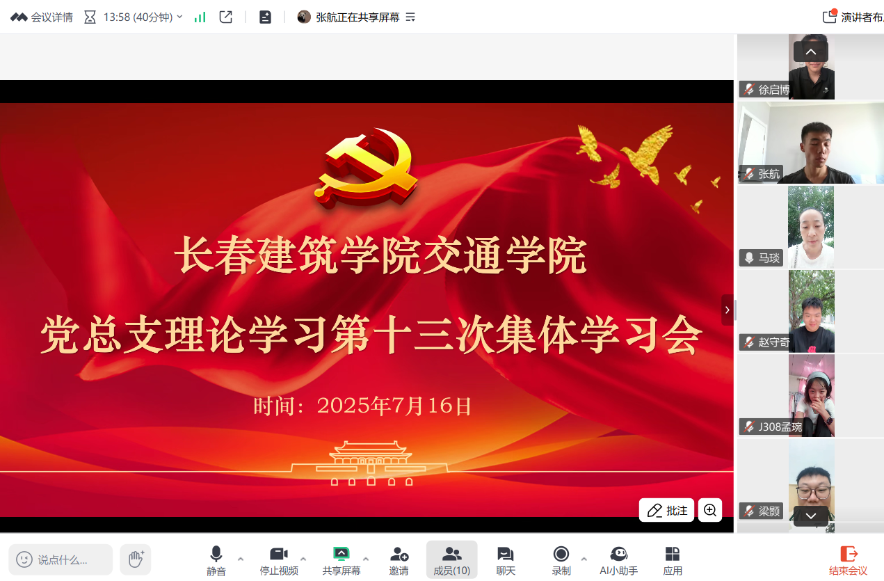 2025年7月16日,公司开展党总支理论学习第十三次集体学习会。参与此次会议的有:公司党总支副书记马琰以及全体党员。本次会议由党员张航主讲。