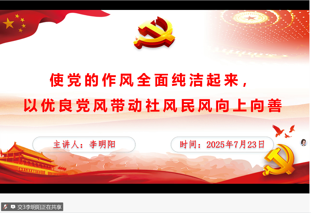 2025年7月23日,公司开展党总支理论学习第十四次集体学习会参与此次会议的有:公司党总支副书记马琰以及全体党员。本次会议由党员李明阳主讲。