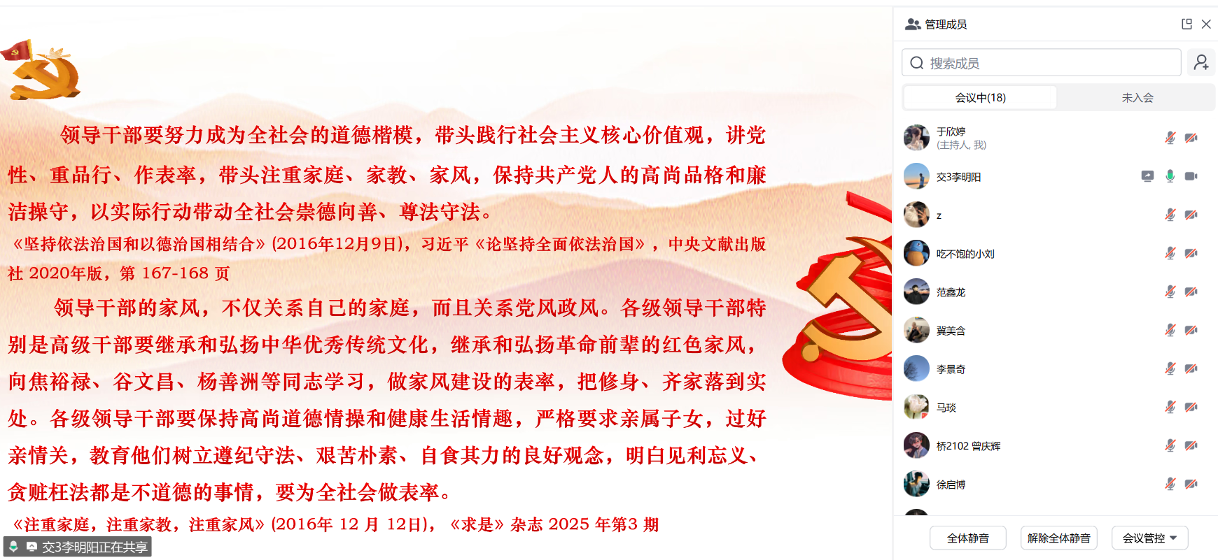 为贯彻落实习近平总书记关于党的作风建设的重要指示精神,推动全面从严治党向纵深发展。特此,公司召开党总支理论学习第十四次集体学习会。此次会议旨在,进一步明确领导干部在作风建设中的责任与担当,推动“三严三实”要求落地生根,以优良党风带动社风民风向上向善,为高质量发展提供坚强的作风保障。